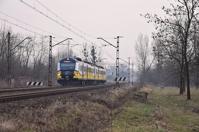 | EN57 Kolei Dolnośląskich na Wrocław Wojnów przejeżdża przez Brochów, 07 lutego 2018 roku / fot. Piotr Weber |